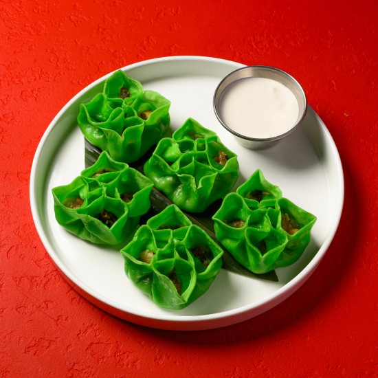Курица, моцарелла, грибы шиитаке, шампиньоны, брокколи, огурец, зелёный лук, соус том кха