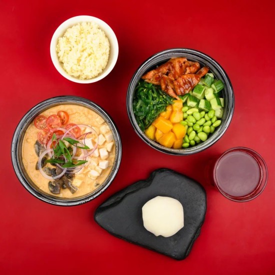 В комболанч входят: суп, поке, моти и морс.