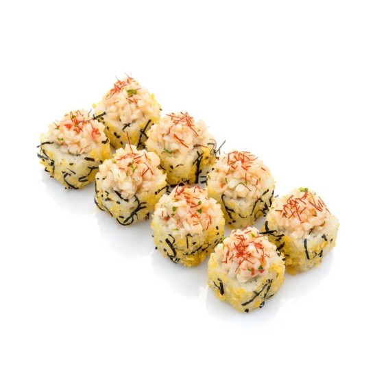 Рис, угорь, кальмар, сливочный сыр, нори, огурец, нити чили, кунжут, соус сладкий чили