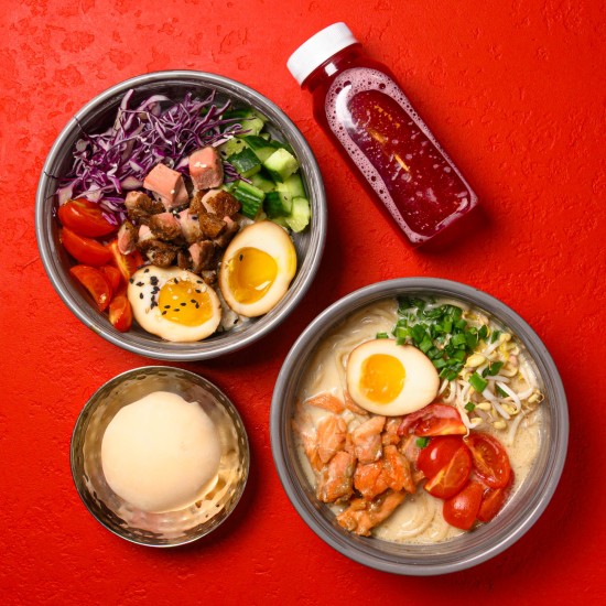 В комболанч входят: рамен, поке, моти и морс.